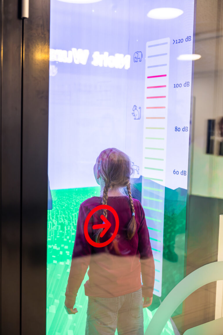 Redesigned as an interactive sound installation, Schreiraum lets visitors experience how loudness affects hearing. A microphone translates screams into colorful animations on a triptych LED screen. Guiding participants through animated animal forms that represent rising decibel levels, turning sound into a playful, intuitive experience.
