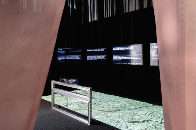 Für die Ausstellung im Architekturmuseum der TUM, Pinakothek der Moderne – kuratiert von Damjan Kokalevski – entwickelten wir interaktive Exponate, die den materiellen Fußabdruck digitaler Systeme thematisieren: Rechenzentren in urbanen und abgelegenen Räumen, globale Unterseekabelnetze und die Rohstoffe, auf denen Infrastruktur basiert.