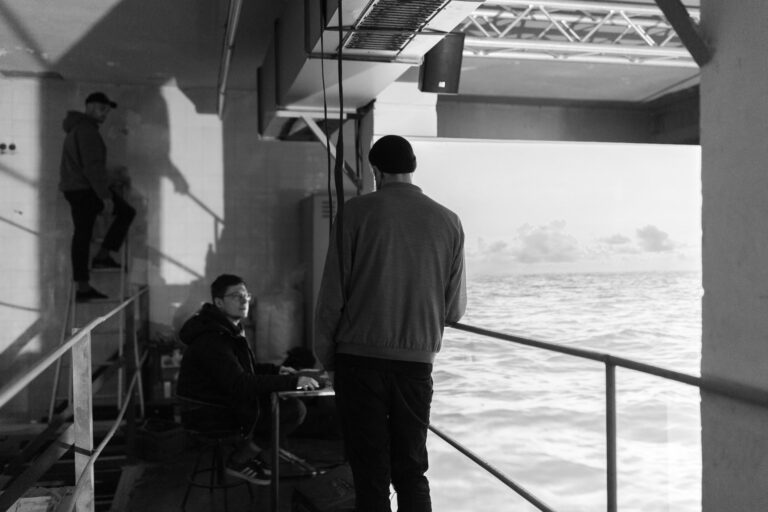 Im Rahmen der Ausstellung „Corona Culture“ präsentierte Sea-Watch eine audiovisuelle, immersive Installation, die Besucher:innen dazu einlädt, sich mit dem komplexen Themenfeld der Organisation auseinanderzusetzen. Die Spannungen rund um das Mittelmeer werden dabei künstlerisch vermittelt – ebenso wie die Dokumentation von Menschenrechtsverletzungen, die politische Bildungsarbeit und journalistische Recherche maßgeblich stützt.