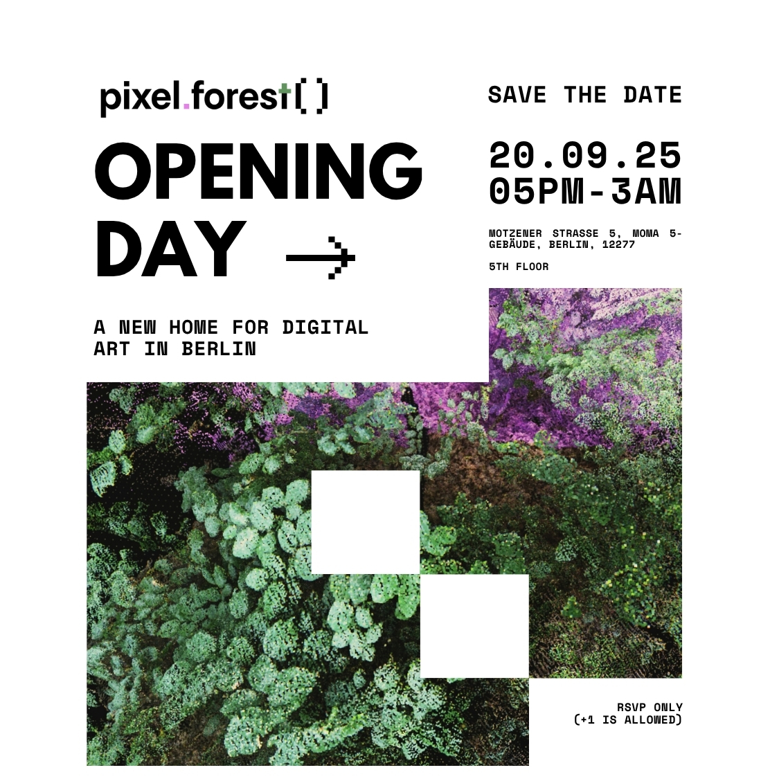 pixel.forest is a home for digital art — a space for exhibitions, experiments, conversations, and long nights. We want it to be open, welcoming, and a little imperfect. A place where artists, friends, and curious minds can meet, share work, and see what happens when technology and art collide. On September 20, 2025, we opened the doors for the first time.