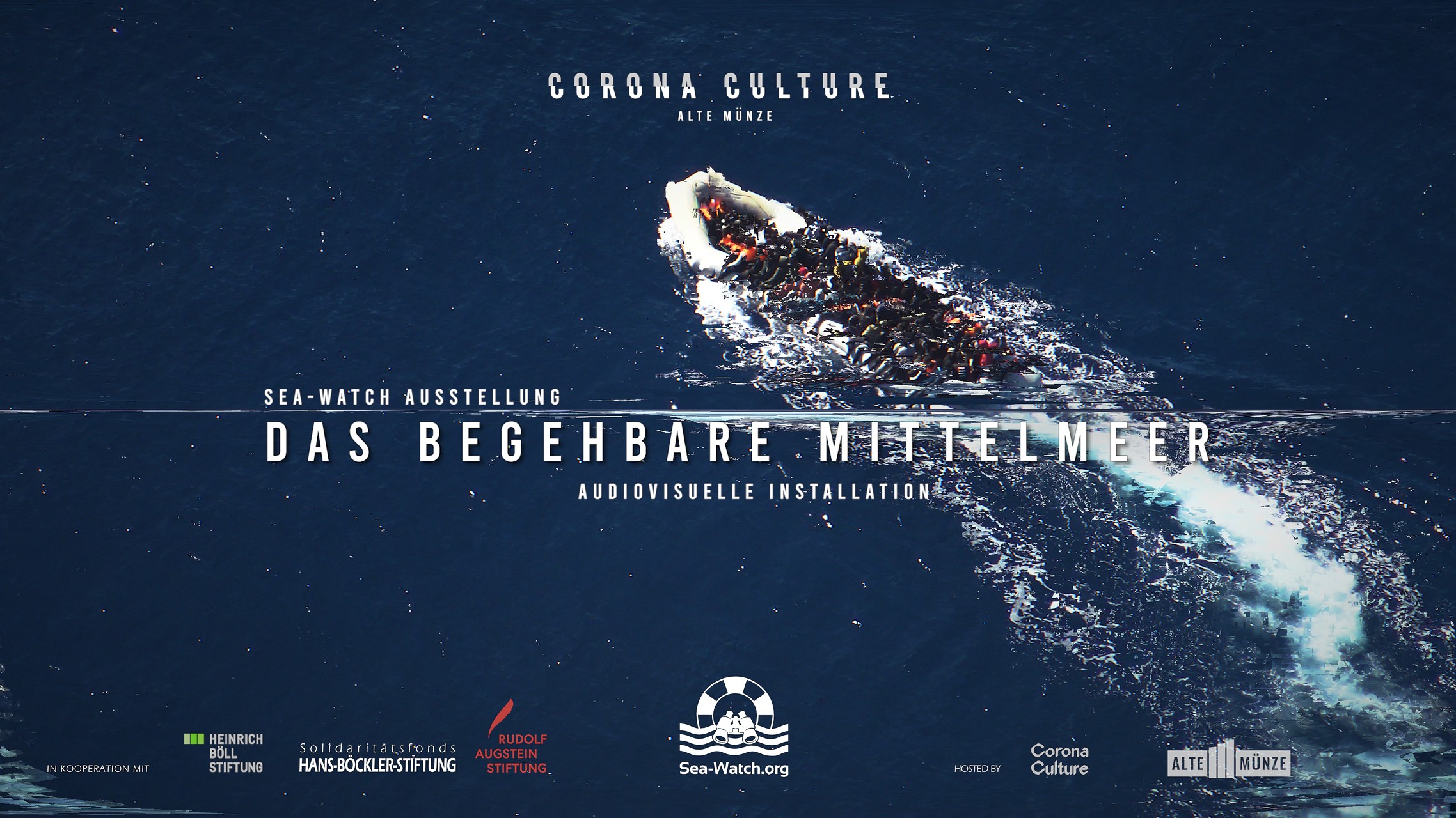 As part of the Corona Culture exhibition at Alte Münze Berlin, Sea-Watch presented an audiovisual and immersive installation, inviting visitors to engage with the organization‘s complex topic. The tension surrounding the Mediterranean Sea is conveyed artistically, alongside the documentation of human rights violations, which underpins political education and journalism.
