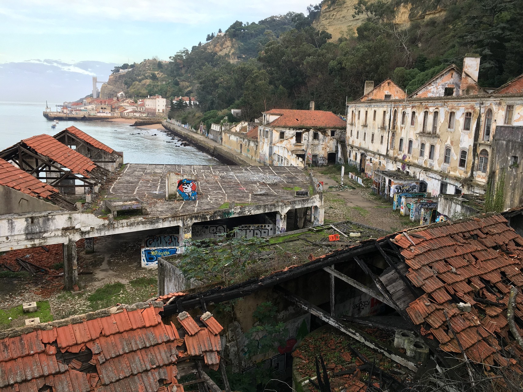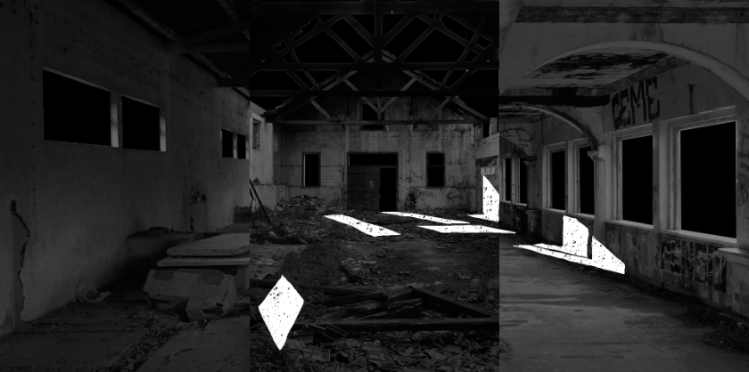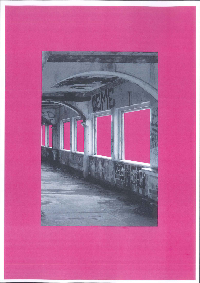 SYNTROPIA is an animated video installation presented at the MONSTRA film festival in Lisbon. Displayed on three plastered windows in the cinema’s entrance hall, the installation features scenes from abandoned sites across Portugal, including hospitals, hotels, military stations, factories, and palaces. These locations were combined into a new space, connected by hand-drawn animations and analog timelapses that highlight temporal decay and the concept of syntropy, where chaotic states self-organize into order. The project harmonizes hectic animations and decaying architecture within a digital framework, eventually revealing the creative potential behind Lisbon’s many barricaded windows.